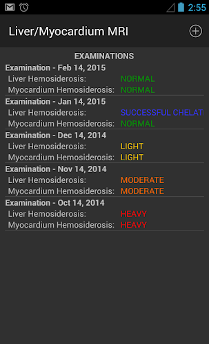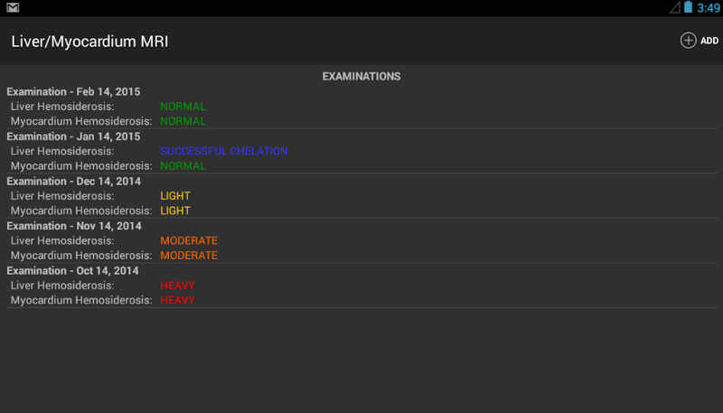 4. Zaznamenávání výsledků pro lékařské vyšetření, které jsou relevantní pro pacienty s thalassemií. Aplikace podporuje zaznamenávání hodnot ferritinu a hemoglobinu a jejich data měření. Navíc umožňuje zaznamenávání hodnot indexu depozice játra a srdečního železa, protože jsou měřeny metodami zobrazování magnetické rezonance