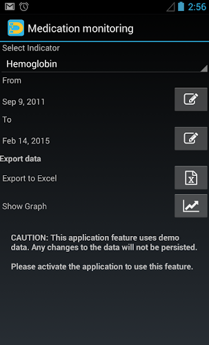 5. Monitorování hodnot indexu ferritinu, hemoglobinu a železa. Desferapp podporuje grafickou ilustraci vývoje těchto indexů v průběhu času. Kromě toho může uživatel exportovat, aby vylučoval fluktuaci hodnot každého indexu pro konkrétní časové období.