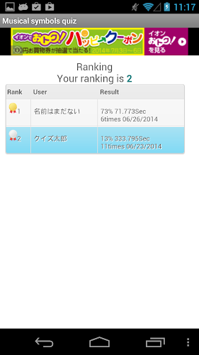 Look at the image of Musical symbol, and then select an answer from four selected.When your high score is going to come out, Let’s send the score and put your name.