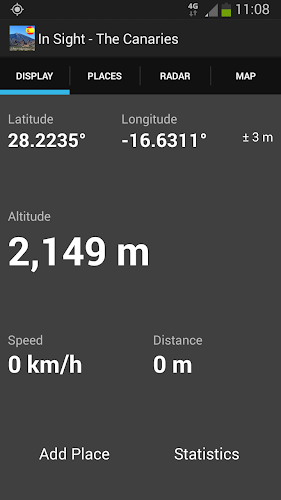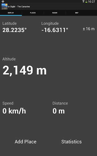 V Sight Kanárské ostrovy je také výškoměr, rychloměr a také odhaduje vzdálenost, kterou jste cestovali. Vyberte si mezi metrickou (km, m) nebo imperiální (míle, nohy) jednotkami.