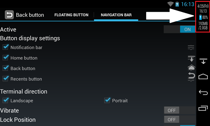 Display the clock and battery and memory.*'Back Button (No root)' only widget.