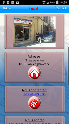 aplikace ”autoškola saint christophe” nabízí možnost konzultovat všechna fakta o autoškole (tarify, služby, recenze...), ale také dostávat jejich nejnovější zprávy nebo letáky jako upozornění push.caractéristiquesaplikace: - prezentace a adresa - předstanice - platba online - fotogalerie a videa - sdílení letáků a novinek v push-notifications geolocation - facebook utilisateurs.application