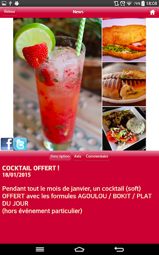 aplikace „kréyol Terras“ nabízí možnost konzultovat všechna fakta o restauraci (ceny, mapa, názory...), ale také dostávat jejich nejnovější zprávy nebo letáky jako aplikaci push.caractéristiques oznamovací: -prezentace a adresa - online platba kartou- fotogalerie a videa- letáky a novinky v push-notifications geolokace.aplikace facebook-sdílení aplikace theurtvision.