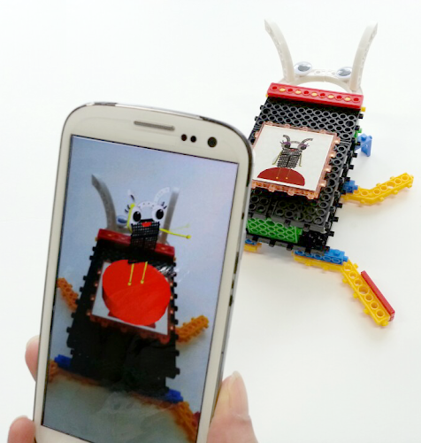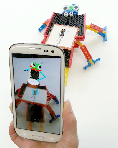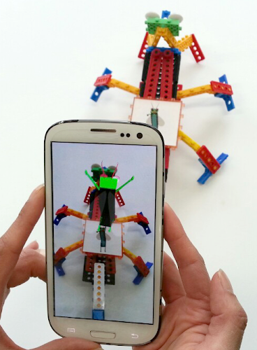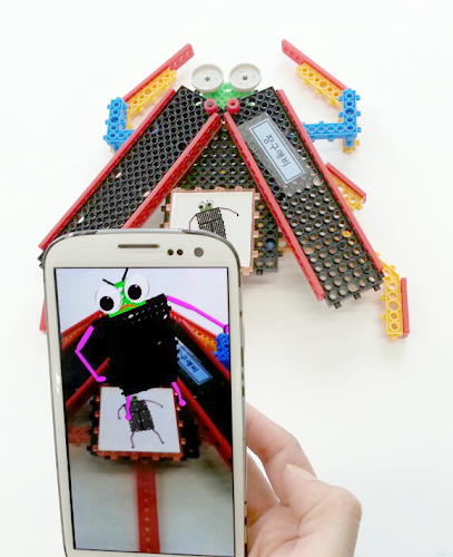 'ARTOY[HARU]_C’ in the app and digital log book and a toy robot is composed of insects,