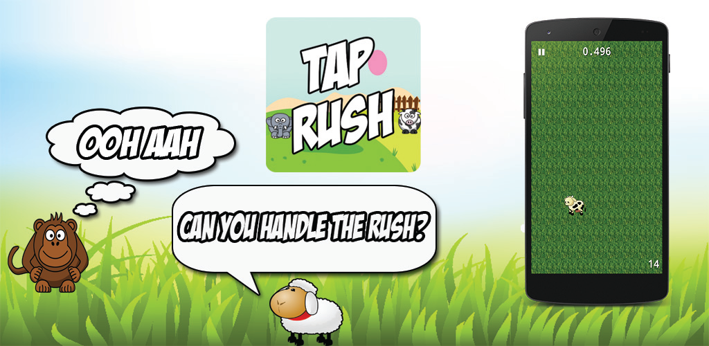 Tap Rush requires quick-response and eye-hand coordination.Animals will appear randomly on the screen, tap the animal as soon as you see it. Mind the grass, if you touch it you lose immediately!