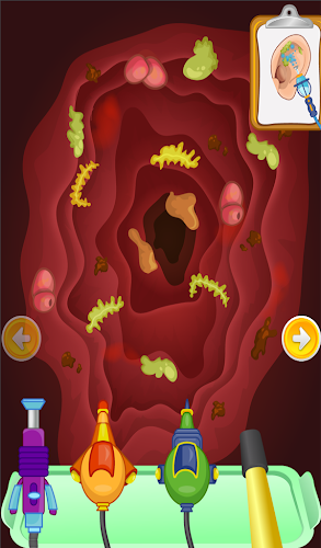 Ušní lékař Kids je zábavná, realistická hra lékaře, kde máte sklon k pacientským ušským problémům, prováděním operací a používání rozsahů, abyste se podívali hluboko uvnitř uší pacienta a opravovali, opravovali a odstraňovali tkáň, trosky, hlenu a další !!Vyberte si ze 3 jedinečných a zábavných postupů! Ušní klinika - léčba problémů s ucho pacienta pomocí široké škály nástrojů, jako je vodní zbraň, sací, jehla a pinzeta!