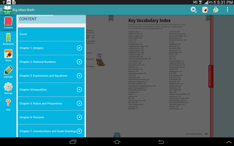 matematická aplikace velkých nápadů vám umožňuje ukládat a organizovat vaše dynamické studentské e-knihy na vašem mobilním zařízení. každá e-kniha obsahuje úplné studentské vydání textu, dynamické výzkumy, které přímo navazují na velký matematický obsah, a odkazy na další zdroje a nápravu.Po stažení aplikace matematická knihovna velkých nápadů do vašeho zařízení budete mít přístup ke svým e-knihám online i offline.
