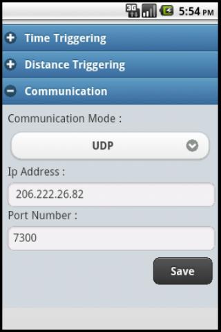 if this feature is enabled then background service will look for the gps location continuously and after specified amount of distance traveled, post the data to the server. Interval vzdálenosti v metru je také konfigurovatelný na kartě Nastavení podle této funkce. Aktuální interval vzdálenosti Min je 100 metrů a interval maximální vzdálenosti je 5000 metrů. Režim komunikace UDP umožňuje uživateli nakonfigurovat číslo IP a portu serveru, kde by aplikace měla zadat protokoly. a komunikační režim TCP (HTTP) umožňuje uživateli nakonfigurovat URL URL HTTP, kde by aplikace měla zveřejnit protokol