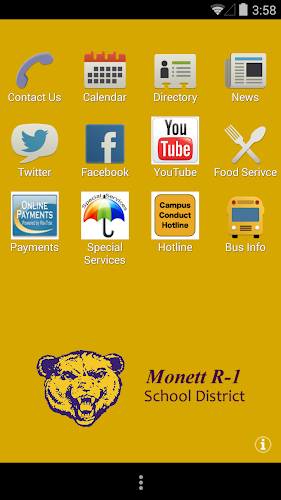 představujeme aplikaci monett r-1! vše, co chcete vědět o školní čtvrti Monett r-1, na jednom snadno použitelném mobilním místě. aplikace pro školy monett r-1 poskytuje rodičům a studentům na jednom místě přístup ke školním setkáním a důležitým školním informacím kdykoli ve dne i v noci. vám přináší tabule, abyste mohli „vědět na cestách!“funkce: