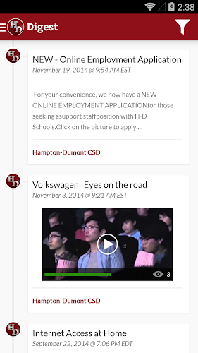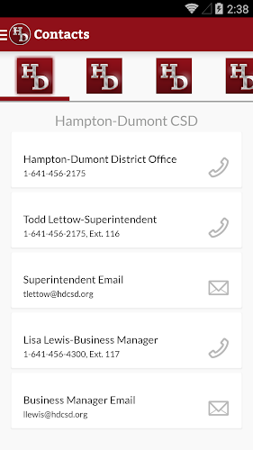 je to vše, co chcete vědět o komunitních školách Hampton-Dumont na jednom snadno použitelném mobilním místě! aplikace h-d umožňuje rodičům a studentům kdykoli přístup na naše webové stránky a důležité informace o škole. aplikaci hd, kterou vám přinesli, takže to můžete vědět i na cestách!funkce: