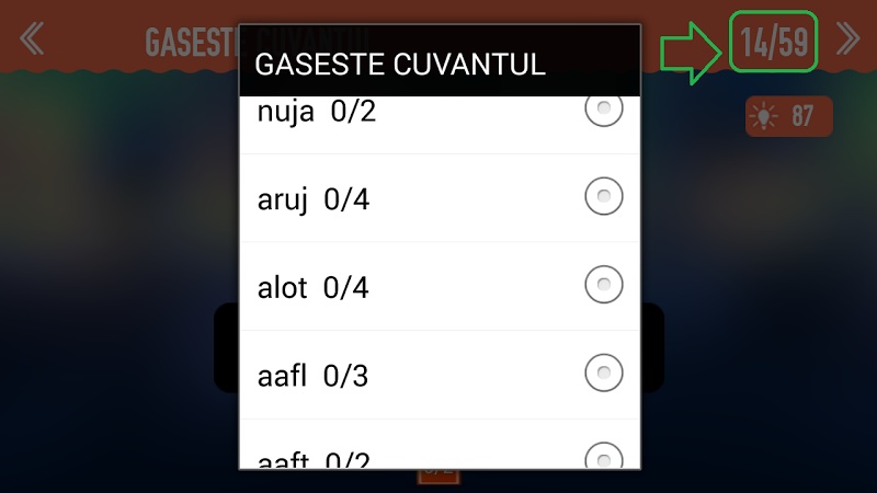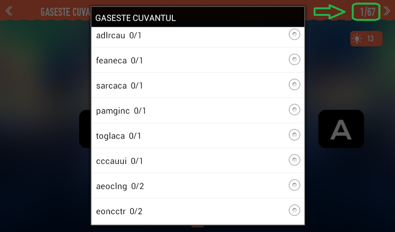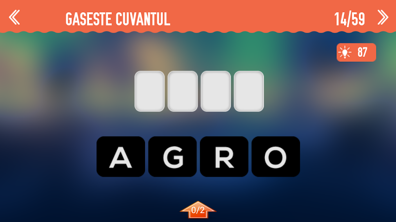 Tato hra je v rumunském jazyce.Najít slovo je hra přesmyček.