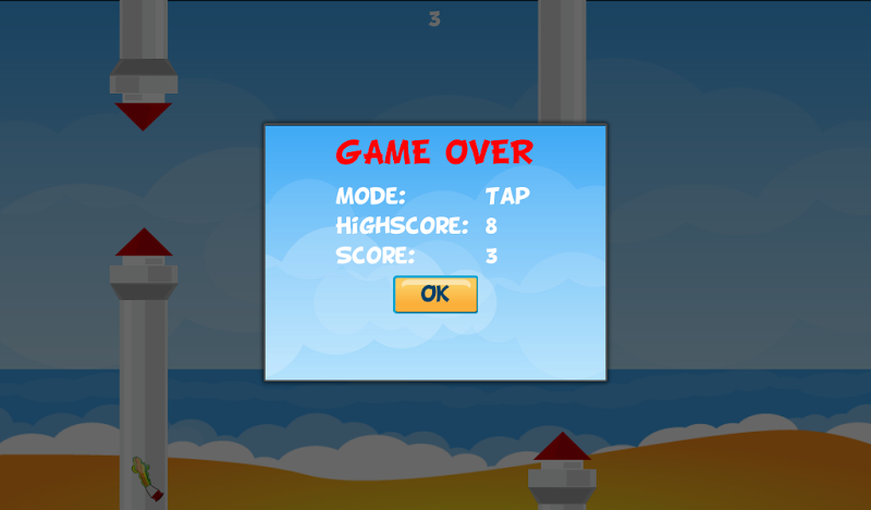 1) Klepněte na tlačítko létat - Klepněte na libovolné místo na obrazovce létat proti vyšší