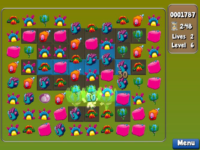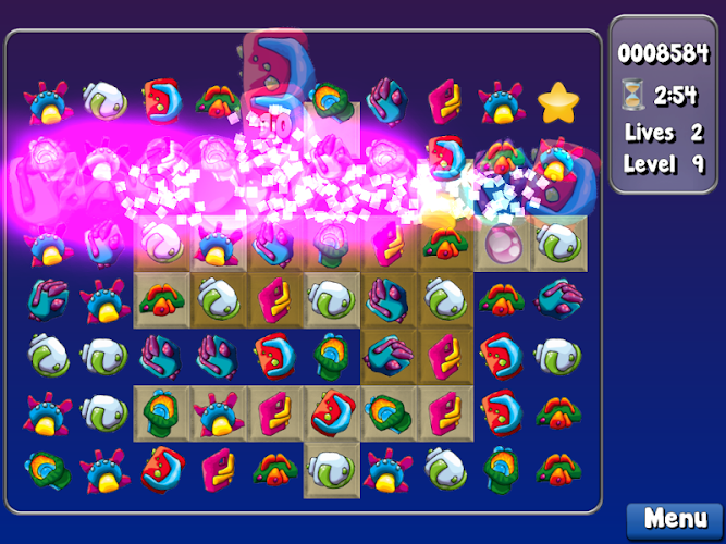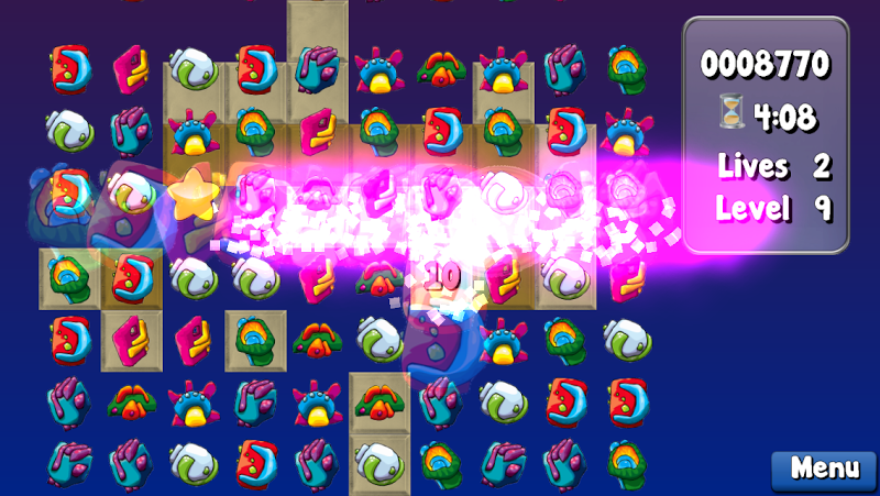 vytvářejte zápasy umístěním 3 nebo více bytostí stejného typu vedle sebe v horizontálním nebo vertikálním uspořádání. Chcete-li vymazat každou úroveň, musíte rozbít všechny destičky pod bytostmi. Pokud vyprší čas, ztratíte život.