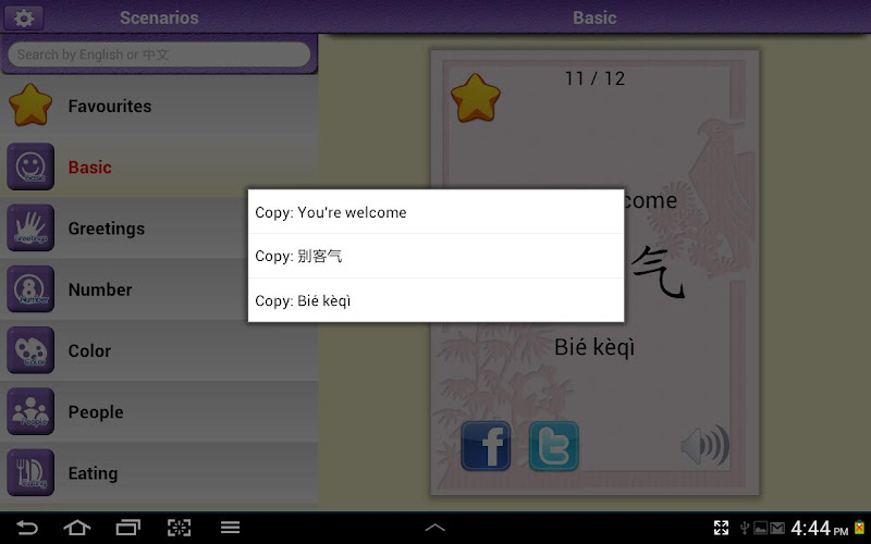 Snadno se naučte čínskou slovní zásobu! Mluvte čínsky s důvěrou!Použitím této aplikace „Learn Chinese sloabulary“ se můžete snadno naučit čínskou slovní zásobu. Aplikace spolupracuje s vámi na procvičování vašich dovedností a poslechu. Učení čínštiny nikdy nemůže být snazší!