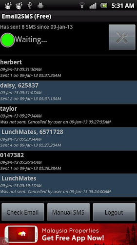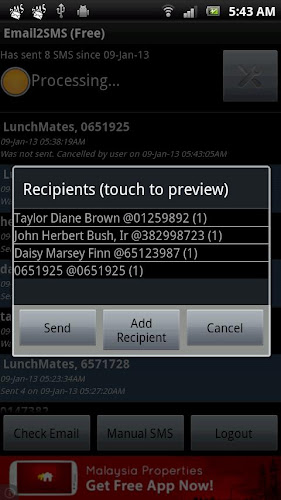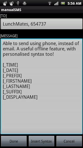 - able to manually key in the recipients and message (in the event there is no internet connection or gmail access)