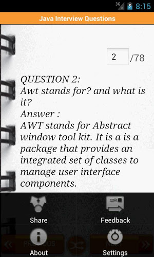 toto je krátká sbírka otázek k rozhovoru v jazyce Java. toto je šikovná aplikace pro ty, kteří se učí javu. užitečné při přípravě na technické pohovory.funkce: