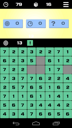 Musíte vybrat boxy. Součet hodnoty vybraných polí musí být roven cílové hodnotě, kterou je třeba najít. Ne všechny krabice jsou platné pro cíl. Některé barvy jsou vyžadovány a některé jsou volitelné. Požadované barvy jsou zastoupeny! (vykřičník) a volitelné s? (Interrogation).