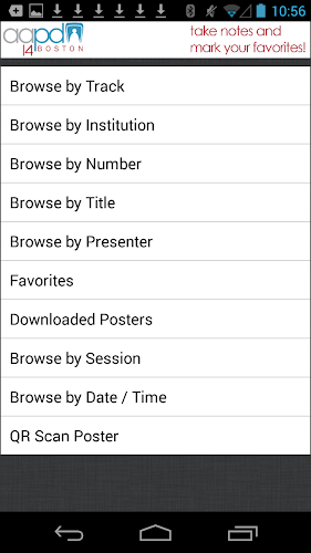 *** pouze pro účastníky výročního zasedání ***mobilní aplikace plakátů aapd 2014 vám umožňuje vyhledávat informace o plakátech a přednášejících z výročního zasedání v roce 2014. prohledávejte plakáty podle čísla, názvu, instituce, dne/času a přednášejícího a prohlédněte si verze každého dostupného plakátu ve vysokém rozlišení. navíc si můžete dělat poznámky vedle každého plakátu.