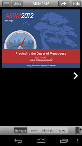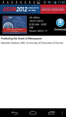 *** Pro účastníky konference pouze ***ASRM 2012 Conference Mobile Leading Application vám umožňuje prohlížet prezentace, relace, informace o vystavovateli a váš konferenční kalendář. Můžete získat přístup ke všem dostupným konferenčním prezentacím a dělat si poznámky na každém snímku. Všechny vaše poznámky jsou uloženy online, takže k nim můžete přistupovat později prostřednictvím online osobního shrnutí.