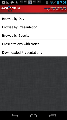 *** Pouze pro účastníky setkání ***Mobilní aplikace AVA 2014 vám umožňuje prohlížet plakáty, prezentace, podrobnosti reproduktorů a vystavovatele ze schůzky. Uživatelé si mohou dělat poznámky sousední dostupné prezentační snímky a nakreslete přímo na snímcích uvnitř aplikace. Poznámka je k dispozici také v modulech vystavovatelů a plakátů.