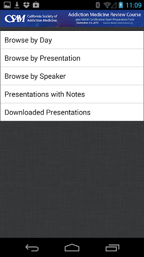 *** FOR MEETING ATTENDEES ONLY ***The 2014 CSAM Addiction Medicine Review Crs mobile application allows you to view abstracts, presentations, speakers, and exhibitors from the course. Users can take notes adjacent available presentation slides and draw directly on slides inside the app. Note-taking is also available in the exhibitor module.