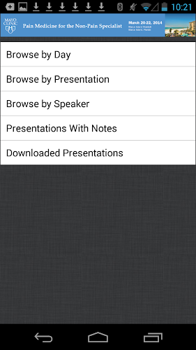 *** pouze pro účastníky ***mobilní aplikace kurzu bolesti na kliniku mayo 2014 vám umožňuje procházet konferenční prezentace, řečníky a vystavovatele. uživatelé mohou prohlížet prezentace a dělat si poznámky přímo na prezentačních snímcích v aplikaci.