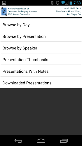 *** THIS APP IS FOR CONVENTION ATTENDEES ONLY ***The NACBA Annual Convention mobile application allows you to search through the Annual Convention content and access the presentation slides during the Convention. You can draw and highlight directly on the slides using your fingers, and you can take notes on each slide. The slides can be downloaded to the app before you go to the course, so you will not need an internet connection at the convention to access the presentation slides when you want them.