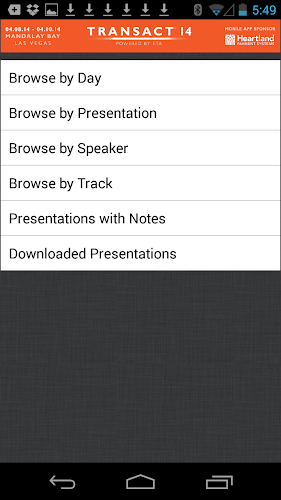 mobilní aplikace transact 14 vám umožňuje zobrazit prezentaci a vystavovatele z výročního setkání 2014. uživatelé si mohou dělat poznámky vedle dostupných snímků prezentace a také kreslit přímo na snímky v aplikaci.uživatelé navíc mohou sdílet informace s účastníky a kolegy pomocí zpráv, tweetů a e-mailů v aplikaci.