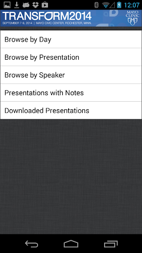 *** pouze pro účastníky schůze ***mobilní aplikace konference transform 2014 vám umožňuje prohlížet prezentace, podrobnosti o řečnících a sponzory z konference. uživatelé si mohou dělat poznámky vedle dostupných snímků prezentace a kreslit přímo na snímky v aplikaci.