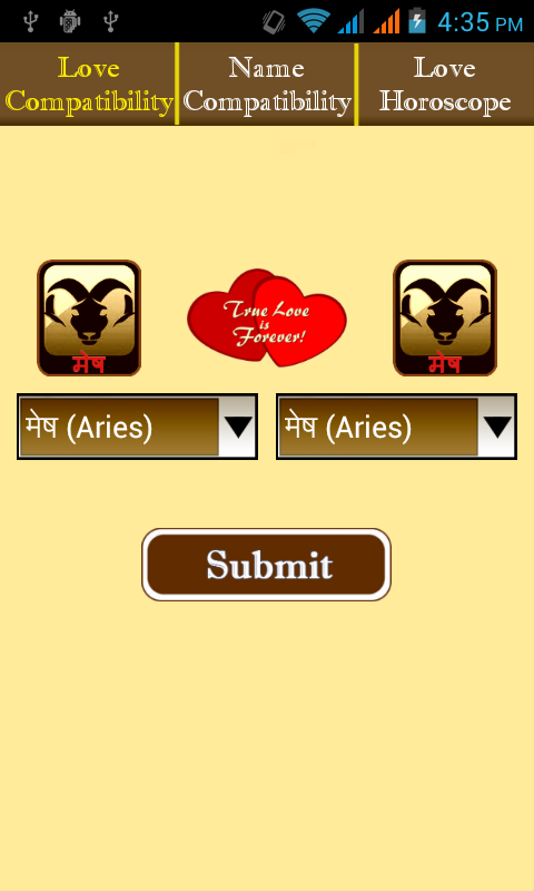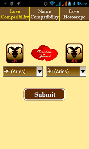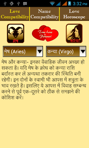 Love Compatibility Hindi App help compare love with your Partner by name,signs