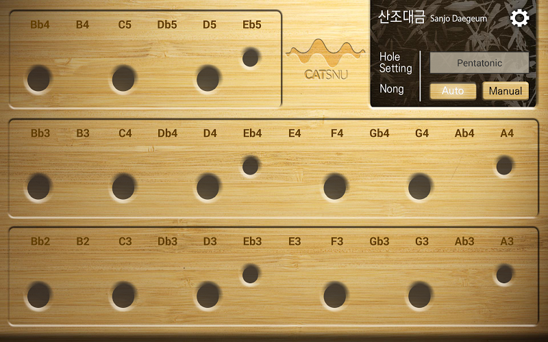 Aplikace Sanjo Daegeum je jednou z „Gugak“, mobilní aplikace, která umožňuje uživatelům hrát tradiční korejské hudební nástroje pomocí mobilních zařízení. Například uživatelé mohou ovládat hlasitost přetažením svisle a ovládat rozteč tím, že přetáhne vodorovně.enjoy korean music with sanjo daegeum!