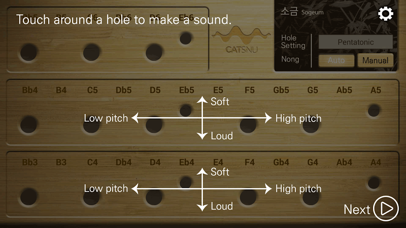 Aplikace Sogeum je jednou z „Gugak“, mobilních aplikačních sérií, která uživatelům umožňuje hrát tradiční korejské hudební nástroje pomocí mobilních zařízeníUživatelé mohou hrát Sogeum dotykem otvorů a manipulovat s zvukem. Například uživatelé mohou ovládat hlasitost přetažením svisle a ovládat rozteč tím, že přetáhne vodorovně.