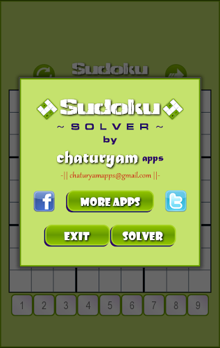 Analýza A Revize Aplikací Pro Android: Sudoku Solver, Vyvinuté Společností Chaturyam Apps. Uvedeno V Kategorii Hádanky. Aktuální Verze Je 1.0, Aktualizována Na 29/08/2014 . Podle Recenzí Uživatelů Na Google Play: Sudoku Solver. Dosaženo Více Než 327 Instalací. Sudoku Solver Má V Současné Době Recenze 1, Průměrné Hodnocení 5.0 Hvězd