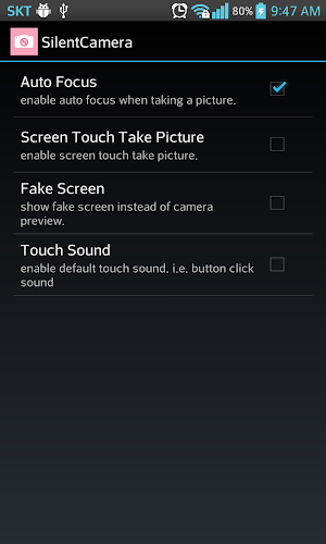 má funkci falešné obrazovky, aby ostatní lidé nevěděli, zda se snažíte vyfotografovat. Dotyková obrazovka nebo tlačítko může způsobit výchozí zvuk. Můžete to povolit/deaktivovat.