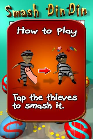 You'll have to smash with your finger all thieves who will try to steal Din Din from your customers.