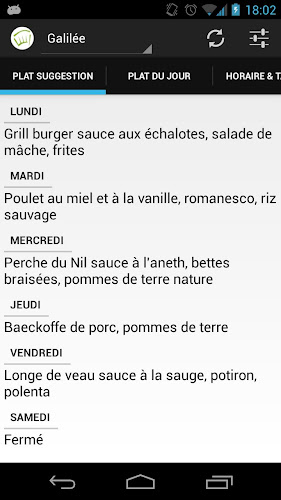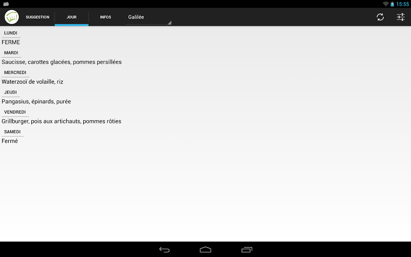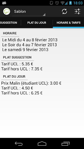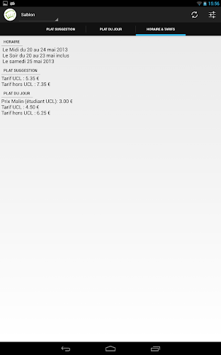 Také jste unaveni z toho, že se musíte pokaždé vrátit na web UCL a jednoduše se ztratíte, abyste věděli, co je dnes odpoledne nebo dnes večer na univerzitní restaurace? Tento čas je nyní prošlým aplikací U restaurace, která vám umožní efektivně a snadno se naučit, jaké jsou návrhy a denní speciality nabízené po celý týden v restauracích Louvain-La-Neve Campus! Užijte si! Dosaženo na základě myšlenkyOriginal LOACBLEZNOTE: Tato aplikace není v žádném případě spojena s asociací University Restaurants VZW a byla vyvinuta nezávislým vývojářem.