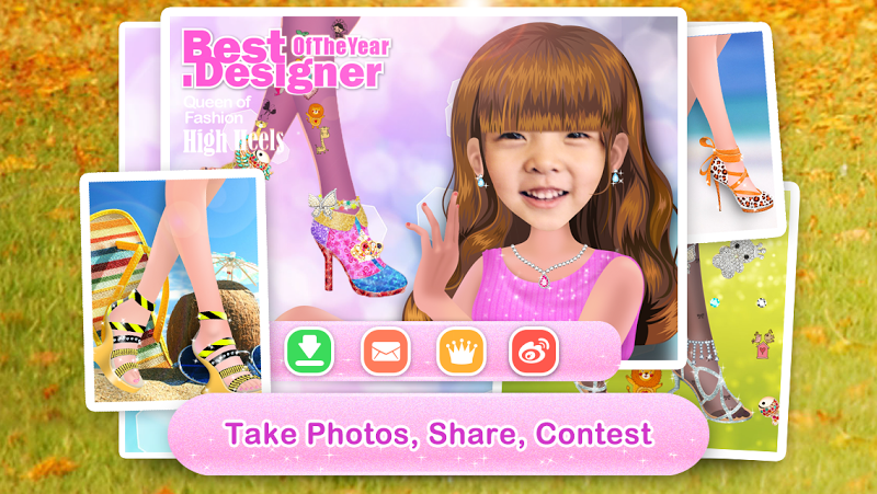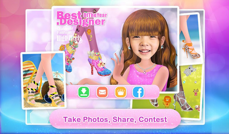 Cítíte se skvěle být super návrhářem? Nezapomeňte pořídit fotografii pro své vysoké podpatky, pomocí poskytnutých obrázků na pozadí nebo obrázků z kamery vašeho zařízení nebo pořízením fotografické stánky jako dívka z časopisu! Fotografie by mohly být sdíleny s rodinou a přáteli prostřednictvím e -mailu nebo Facebooku. A jste vítáni, abyste je poslali, klepnutím na tlačítko Crown, pro soutěž „High Heels Show“, která bude aktualizována každý pátek. Je to také velká show pro fanoušky Coco po celém světě.