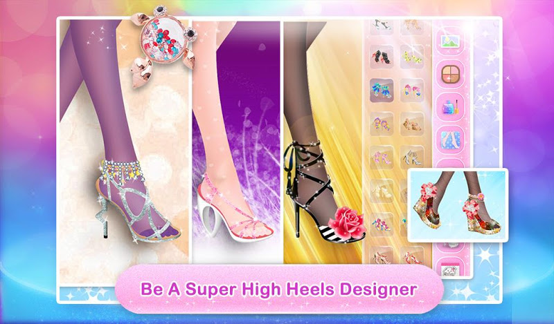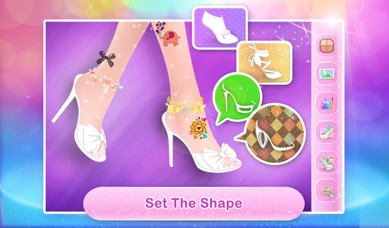 V této uživatelsky přívětivé a neuvěřitelné kreativní aplikaci byste mohli nastavit tvary bot, jak se vám líbí, a vybrat perfektní vzory a barvy ze stovek položek. Mohli byste volně zdobit své vysoké podpatky všemi druhy luků, stejně jako blikající krystaly a diamanty Swarovski, nebo udělat roztomilé tetování na nohou. K vašemu výběru jsou také připraveny barevné punčochy, nehty a některé další další dekorace.