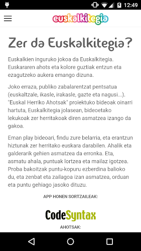 Analýza A Revize Aplikací Pro Android: Euskalkitegia, Vyvinuté Společností CodeSyntax. Uvedeno V Kategorii Vzdělávací. Aktuální Verze Je 1.2.5, Aktualizována Na 14/06/2017 . Podle Recenzí Uživatelů Na Google Play: Euskalkitegia. Dosaženo Více Než 2 Tisíc Instalací. Euskalkitegia Má V Současné Době Recenze 10, Průměrné Hodnocení 4.1 Hvězd