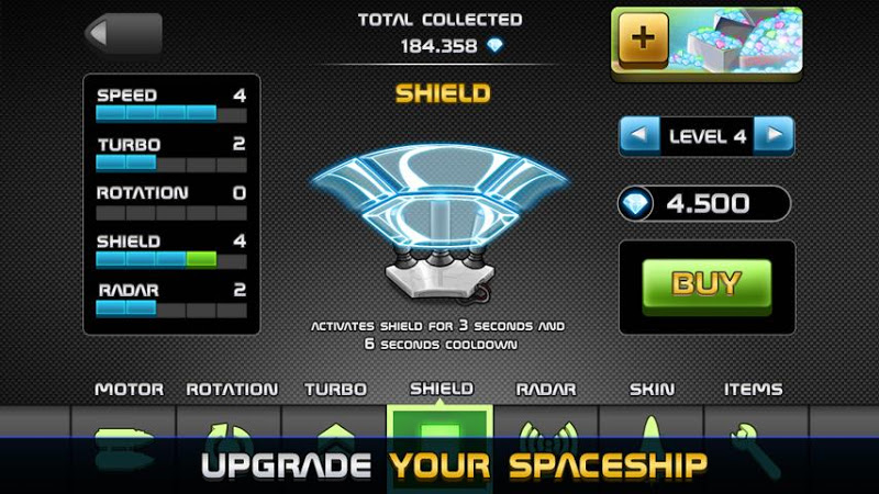- Loď má úžasné dovednosti jako radar pro detekci planet, štítů a turbo efektů.