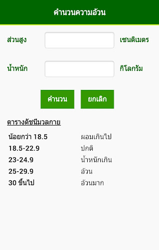 คำนวนความอ้วนโดยใช้ BMI จากน้ำหนักและส่วนสูงของคุณ