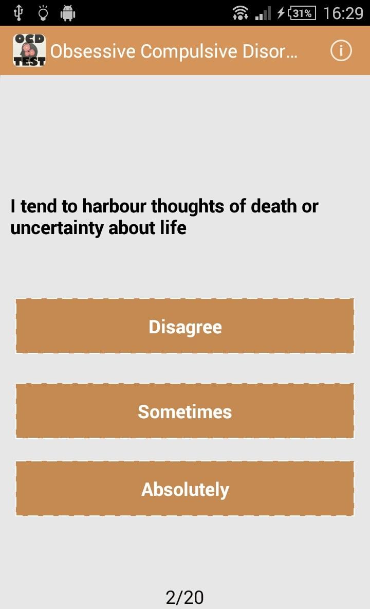 Analýza A Revize Aplikací Pro Android: Obsessive Compulsive Disorder, Vyvinuté Společností Consurgo. Uvedeno V Kategorii Zdraví A Fitness. Aktuální Verze Je 1.4, Aktualizována Na 24/08/2015 . Podle Recenzí Uživatelů Na Google Play: Obsessive Compulsive Disorder. Dosaženo Více Než 20 Tisíc Instalací. Obsessive Compulsive Disorder Má V Současné Době Recenze 39, Průměrné Hodnocení 2.7 Hvězd
