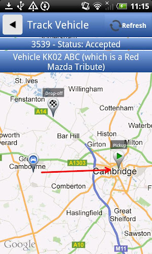 Jakmile je vaše minicab rezervována, můžete své vozidlo sledovat prostřednictvím smartphonu. Jakmile je vozidlo na cestě a pokud bude vybráno ve vašem profilu, zašleme vám textovou zprávu obsahující mobilní číslo automobilu a mobilní číslo ovladačů. Pokud je to požadováno, můžete zavolat řidiči přímo a zjistit, kde přesně je.