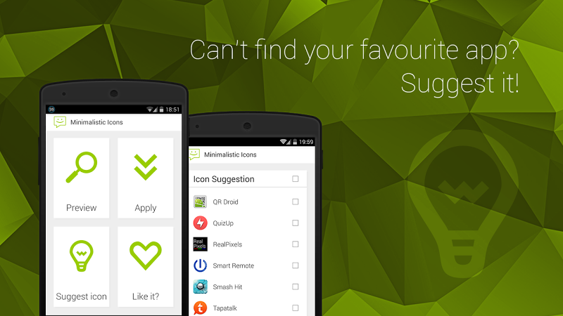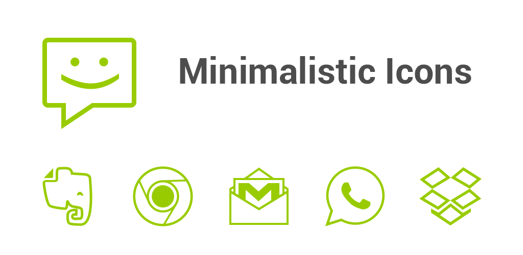 minimalistické ikony poskytují sadu nejoblíbenějších ikon aplikací, jako je facebook, twitter, youtube, instagram, google+, hangouty, mapy, foursquare, whatsapp, naštvaní ptáci, minion rush, pudinkové příšery a mnoho dalších.instalace