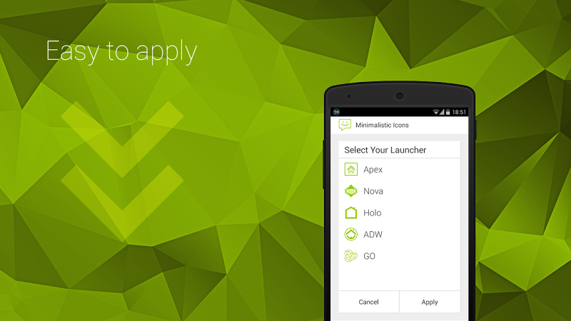 Chcete-li používat minimalistické ikony, musíte mít nainstalován vlastní spouštěč. launcher je vaše domácí aplikace hostující všechny ostatní aplikace. většina odpalovacích zařízení je zdarma. Chcete-li použít naše ikony, postupujte podle následujících kroků: