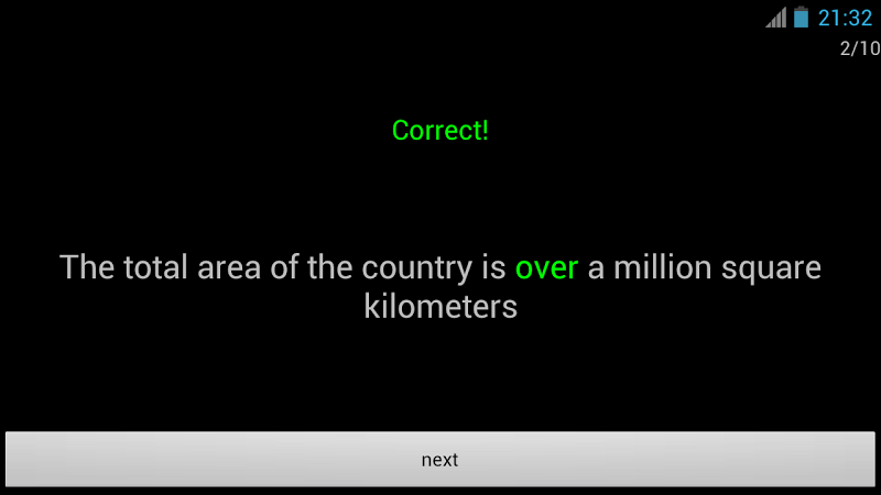 Po každém předložním tréninkovém zasedání uvidíte své statistiky správných odpovědí.