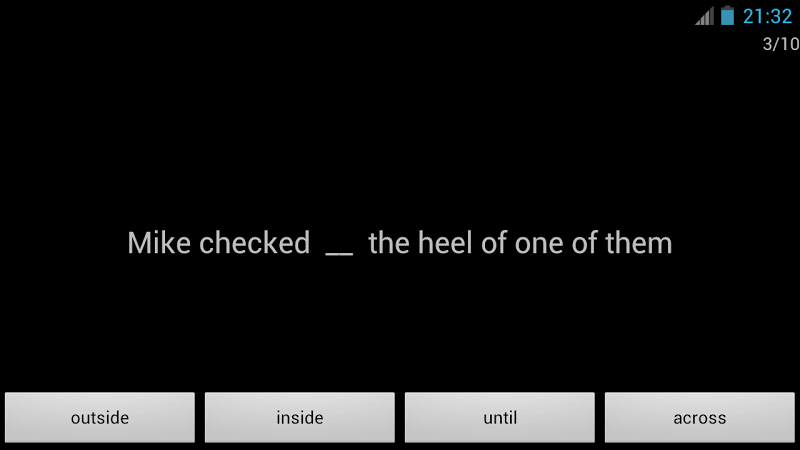 Stačí vyplňovat mezeru v zobrazené větě se správnou anglickou předložkou ze seznamu možností a vyzkoušet sami.