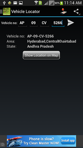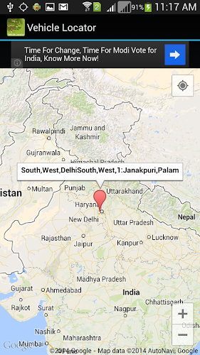 Sledujte umístění oblasti vozidla a zobrazení umístění na mapě z celé Indie.