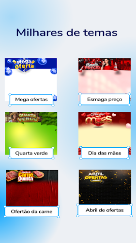 S ds.app můžete vytvářet nabídky pro svůj obchod a propagovat své produkty ve slavnostních dnech, jako je Den matek, Vánoce, Nový rok, Velikonoce a mnoho dalších. Dále pro supermarket a podobné segmenty máme speciální vložky jako Quarta da Carne, Quinta do Hortifrúti, Terça Verde atd.