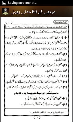 Methi K 50 Madani Phool v Urdu je islámská aplikace pro muslimský bratr a sestry. Tato aplikace je založena na knize „Methi K 50 Madani Phool“, kterou napsal zakladatel Dawateislami Sheikh E Tariqat Aheer E Ahle Sunnat Hazrat Allama Molana Abu Bilal Muhammad Ilyas Qadri Razavi. , Léčba hemoroidů/hromádek, vředů v ústech, madani perly o pískadně qahwa, gutka závislý vyléčený! (podobenství), podobenství o božském barakahu v palivu Bike a mnoho dalšíchMáme vložené funkce:
